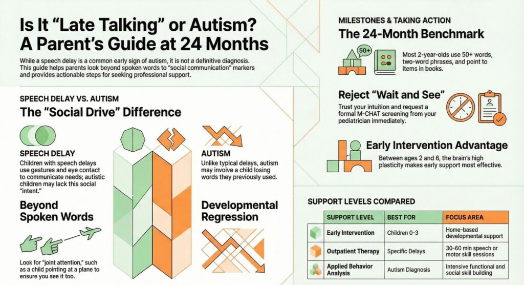 While a speech delay is one of the most common early signs of autism, it does not automatically mean your child is autistic. Many children experience “late talking” due to simple expressive delays, while for others, the lack of speech is part of a broader pattern of developmental differences.
